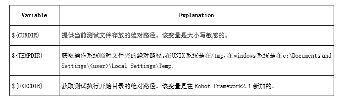 1.直接在testsuit或在resource中定义的变量是默认在所有case中有效的,但是这些变量往往是静态的,无法动态地改变;例如在case1中获取到一个变量的值,需要在case2中使用,这时候可以将case1中的这个变量设置为全局有效或suit下有效,使用Builtin库的Set Global/Suite/Test Variable关键字,实例如下: