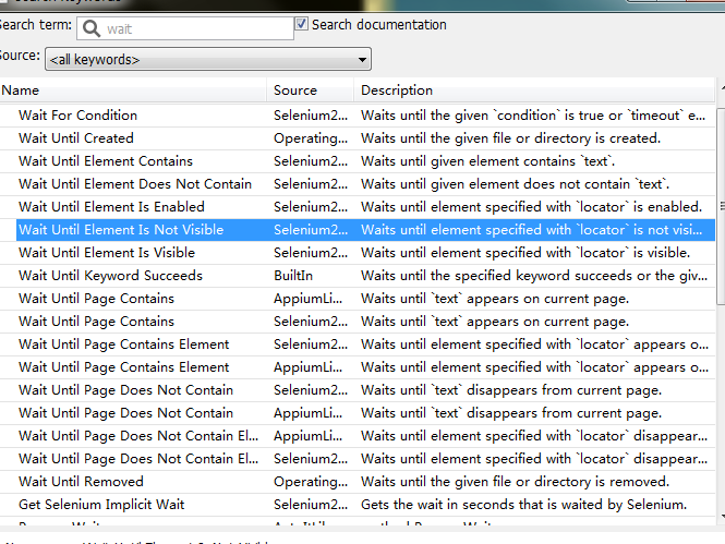 但是该关键字有个缺陷:在使用其它关键字找出某元素的列表时,这个关键字会使得这类操作必须等待全部的超时时间。